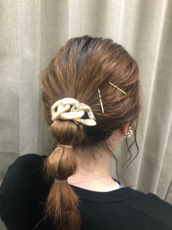 まとめ髪にサッとさすだけで簡単におしゃれなしあがり。