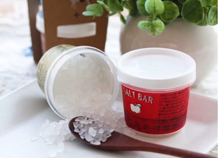 「ソルトバー」は自然塩にカフェの香りをプラスした入浴用バスソルト。中身は天然塩なのでまっしろなソルト。