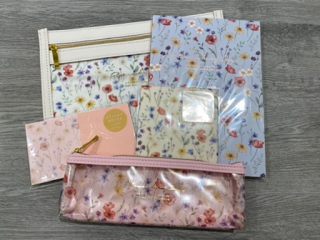 ペンケースやポーチ、マスキングテープなどの女の子らしく可愛いステーショナリーセットです。