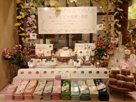 たくさんのお花で彩られたこちらの売り場には、飾らないちょっとしたギフトだけど気持ちが伝わるものがたくさん並んでおります。