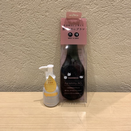 続いてはブラシです!濡れた髪でも乾いた髪でもサッととかすことができ、長さの異なるブラシが髪を無理なくとかしてくれます♪またクッション性もよいので頭皮にも優しいです!