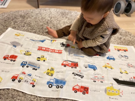 そんな乗り物好きの息子がお気に入りなのが「ずかんタオル」です!