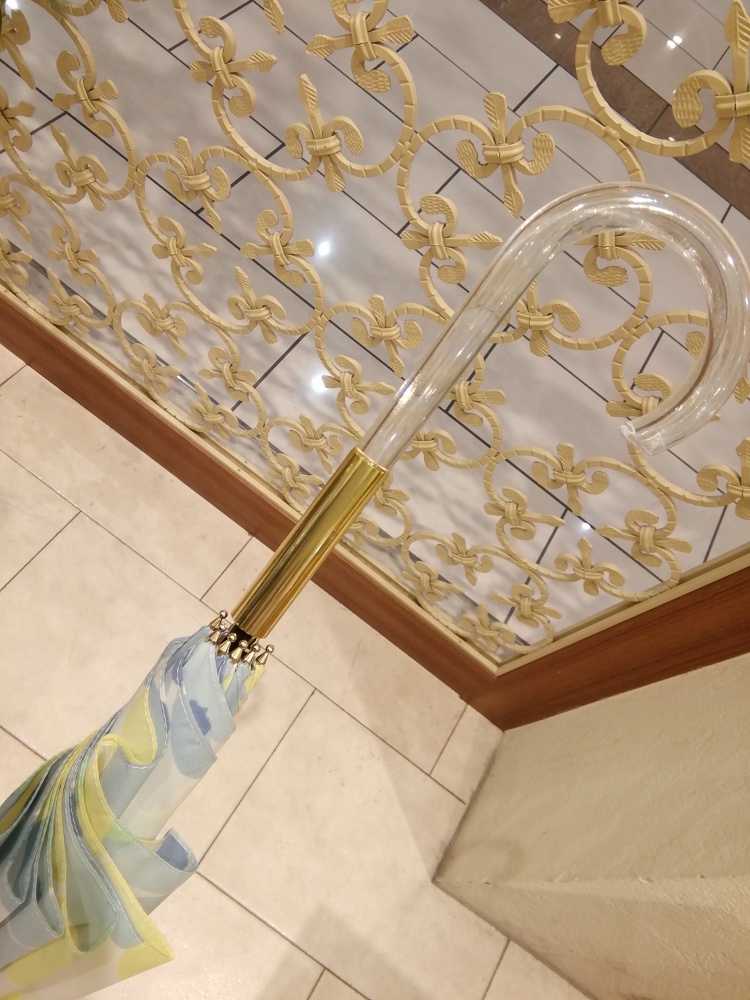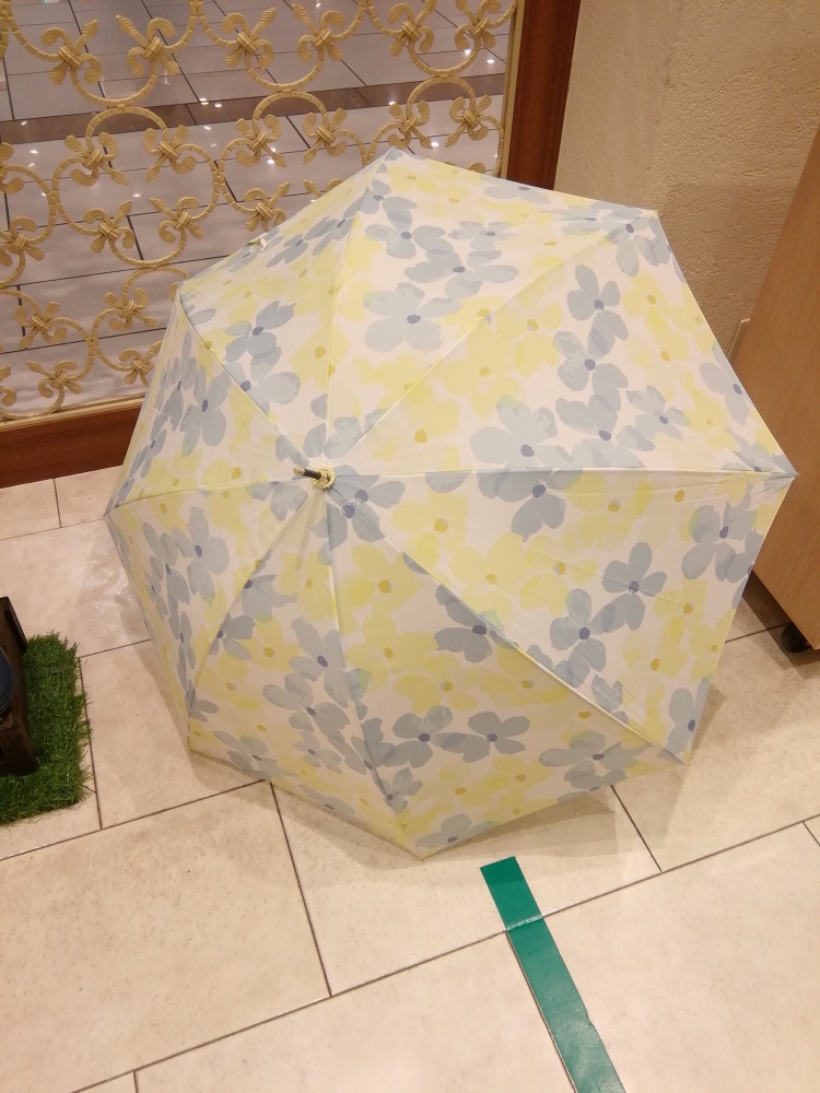 こちらは、黄色と青色 反対色の組み合わせがかわいいお花の総柄の傘です。
