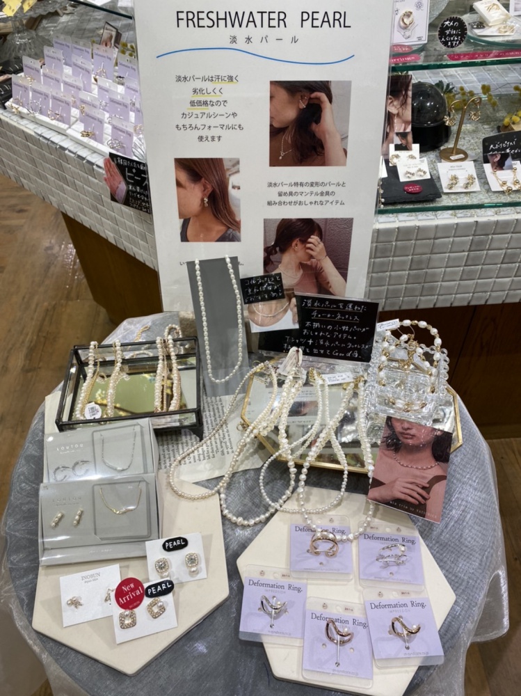 只今店頭にて、淡水パールのアクセサリーを展開しております!