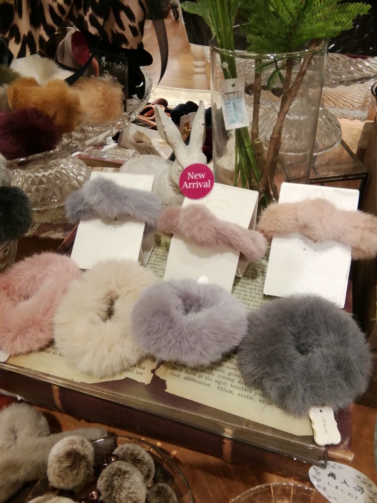 ファーのシュシュも毎年人気です。
