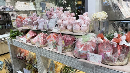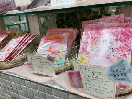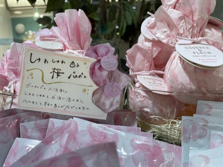 入浴剤コーナーではもう桜が咲いて、わくわくする売り場になっております♡