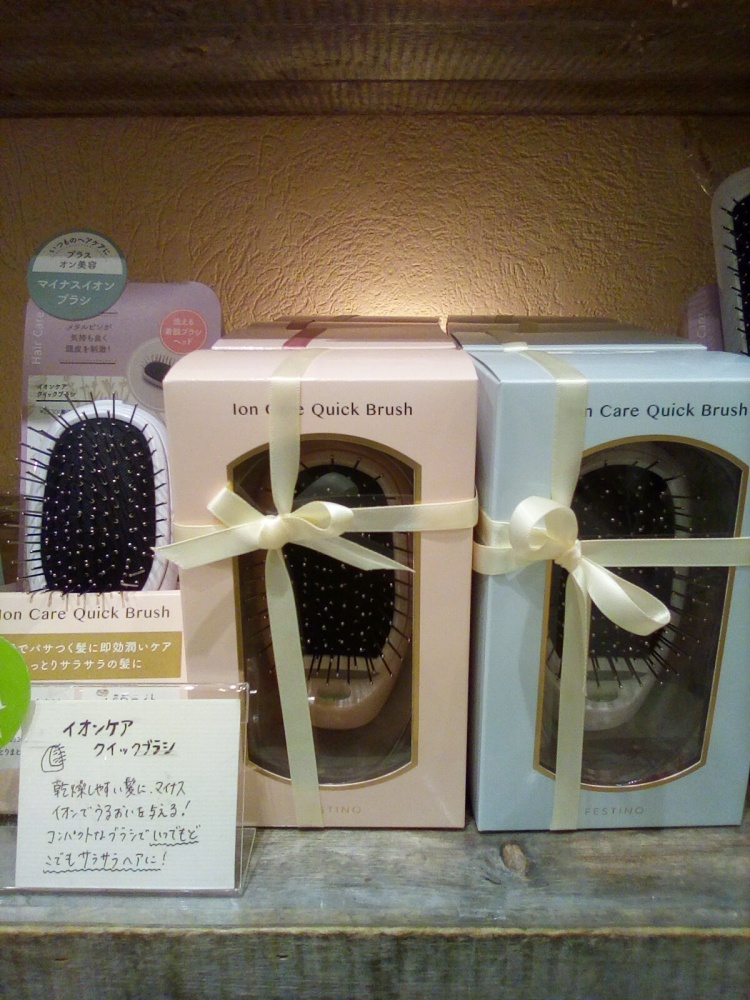 まずは当店No.1の商品「イオンケアクイックブラシ」です。マイナスイオン機能がついた持ち運びに便利なコンパクトブラシです。先端が球状になったメタルピンで頭皮を心地良く刺激してくれます。