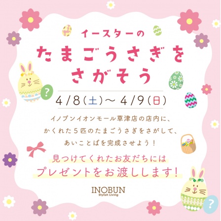イノブンでは、カラフルなたまごの形をしたウサギたちが店内にかくれんぼ!