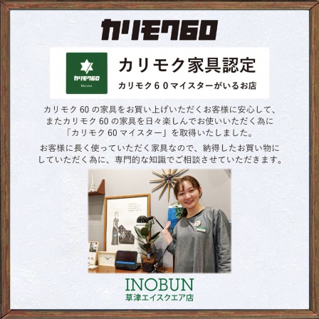 滋賀県でカリモク60のお取り扱いはイノブン草津エイスクエア店だけです。