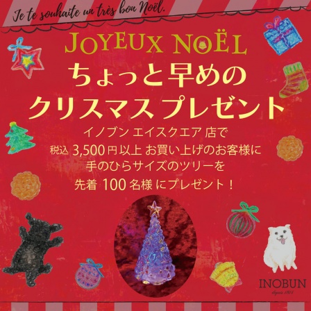 12/6㈮~当店で当日お買い上げ3,500円以上お買い上げの方に、先着100名様限定で、クリスマスツリー型ライトをプレゼントいたします。