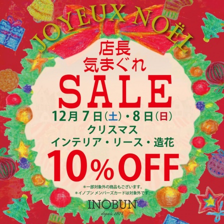 クリスマスインテリア・リース・造花をレジにて10%OFFに致します!