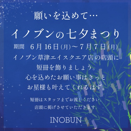 書いていただいた短冊は、店頭にて飾らさせていただきます!