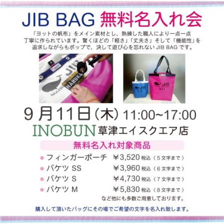 また、9/11(木)11時~17時 JIBBAG無料名入れ会を開催いたします!!