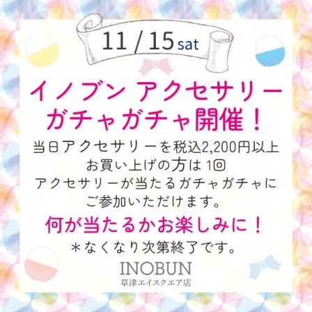 本日は11月15日(土)に開催するアクセガチャガチャのご案内です!