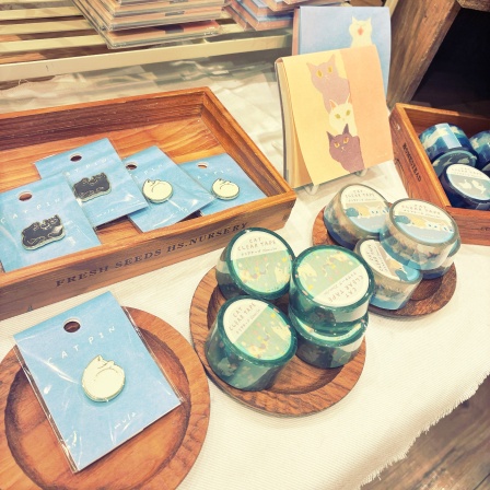 mulaさんのねこちゃんの日常を切り取った文具やピンバッジ、