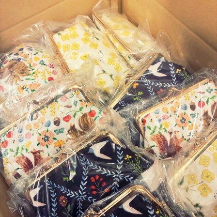 春らしい絵柄のがま口ポーチや