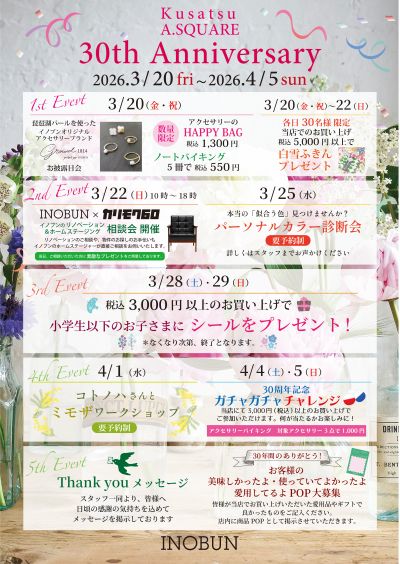 感謝の気持ちを込めて、3/20(金)~4/5(日)まで30周年祭を開催いたします!!