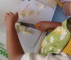 先日は、カレーの材料を包丁とまな板を使って準備してくれました♪