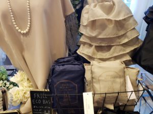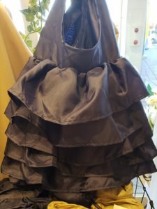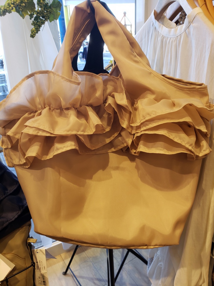 こちらは縦長でA4もスッポリ!エコバッグなのに全体のフリルでかわいさも上品さも兼ね備えています。