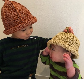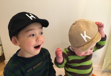 兄弟で、おそろいコーデ。。。きっと公園の注目度アップ間違いなしです。