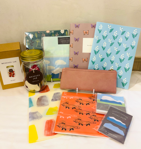 ボリューム満点!ノートやファイル、レターセット、ペンケースなどが入った大満足のセットです。