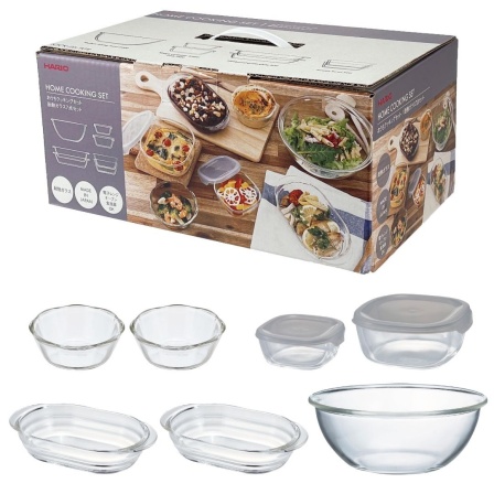 レンジでの調理や食器としても使いやすいHARIOの耐熱ガラス7点セットです。