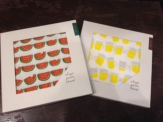 これぞ夏といった、すいかとビール柄のタオルです。