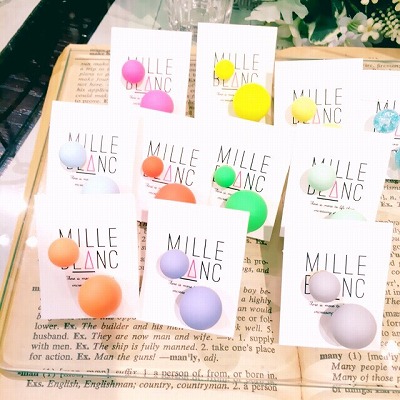 スーパーボールのようなまーるいピアスです。色がとっても豊富で一つに選びきれないです!!でも、気分で色を変えたり、左右で色を変えてつけてもすごく可愛いですよ(^ ^)私もどの色にしようかなと迷っています!