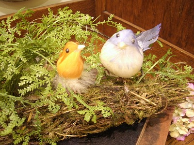造花と合わせると、かわいい小鳥。
