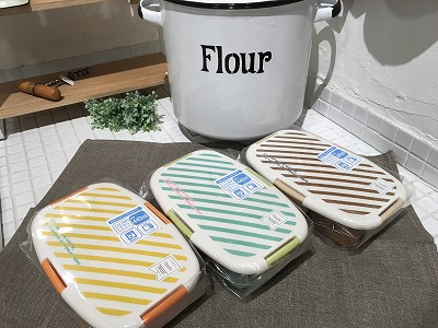 無地のお弁当箱にストライプ柄のゴムバンドがかわいいですよね♪