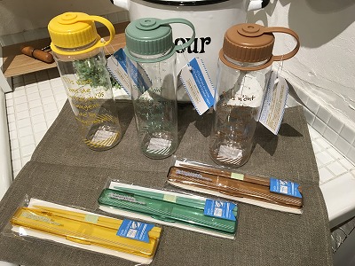 同じシリーズのウォーターボトルとお箸ケースもご用意しております!
