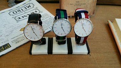最近店内で色々と商品の陳列が変わり、DWの腕時計の場所も変わりました。元はペンやトラベラーズノートなどが置いてあるStationaryのところにありましたが、今は左奥にある掛け時計コーナーの下に置いてあります。もし分からなければお気軽にスタッフまでお声かけ下さい。