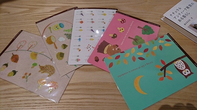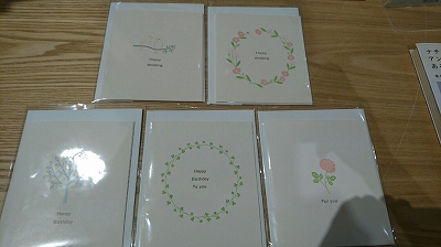 こちらのカードは右二枚はりすとふくろうで可愛らしいカードになっており、左2枚と中央のポストカードは手触りが良く、色合いもナチュラルに仕上げているのでどんな方にも贈れるカードになっています。