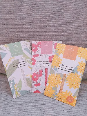 まるでポストカードのようなおしゃれなパッケージ、はっとするセンスのネーミング、そして美肌効果もある優しい香りのバスバッグが魅力の商品です。