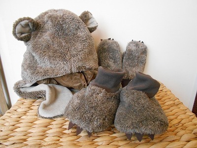 首までしっかり暖めてくれるマフラー付きの帽子や、グローブ。