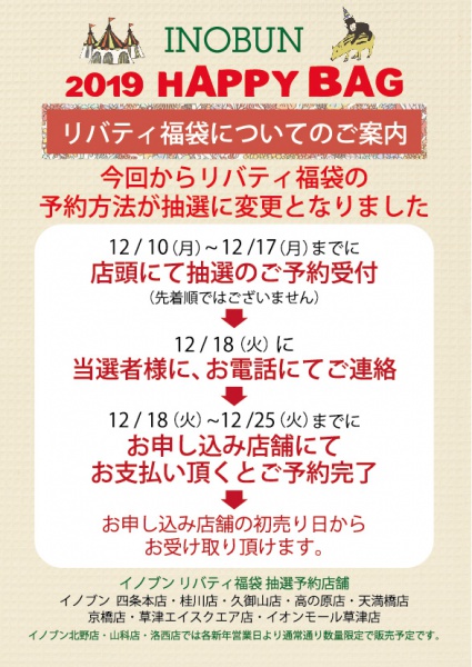 毎年好評のINOBUN2019福袋のご予約のご案内