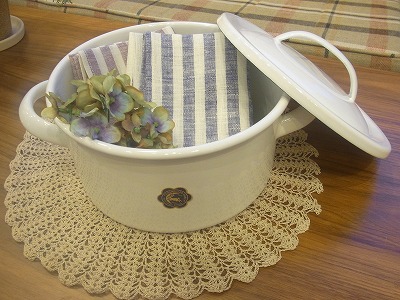 さいごはこちらです。友人の結婚のお祝いで買った月兎印のホウロウ鍋。