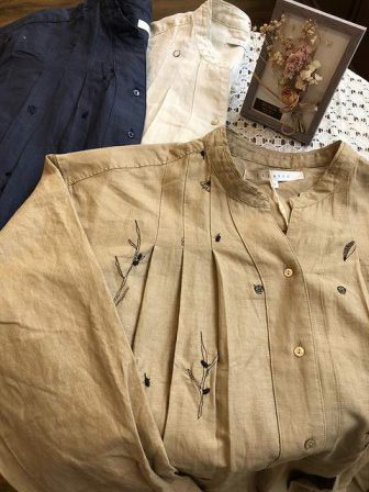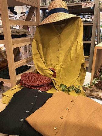 マリーゴールド、ヤマモモ、ヤシャブシをモチーフに、甘くなりすぎないバランスのとれたデザインで、ブラウスとワンピースでご用意。