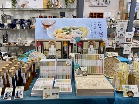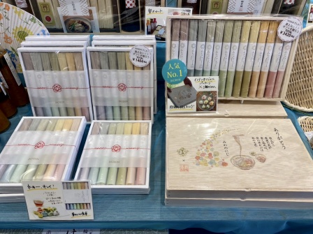 目にも楽しい虹色のお素麺は贈り物にも喜ばれること間違いナシの人気商品です。このお素麺を見るといよいよ夏が始まるな、と感じます🌈