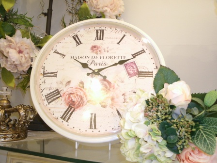 こちらは優しいローズの絵柄が女性らしい掛け時計です!