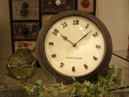 こちらは、立体的な文字盤がかわいい、少し小ぶりな掛け時計です。