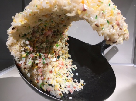 チャーハンが波に見立てられています!生で見るチャーハン波は結構迫力がありました。よ~く見ると…波乗りサーファーが発見できます!