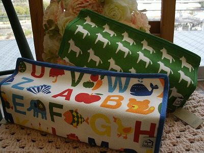 原色使いがとても可愛らしいこちらのティッシュカバー。