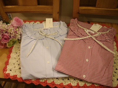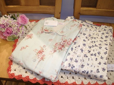 ばらのプリントがされている左のパジャマは襟にレースもついていて