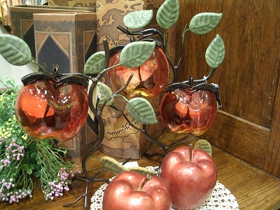 アイアンの木にガラスのりんごがついてます。
