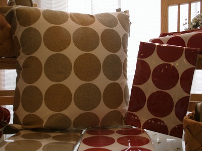大きめドットのクッションです。