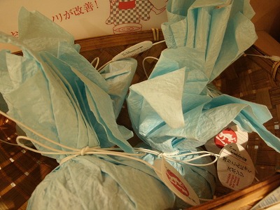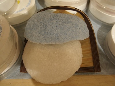 下が通常のこんにゃくスポンジ、上が薄荷入りです。ブルーが見た目にも涼しいです。