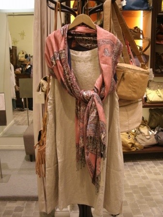 秋色ストール(¥6,195)を合わせて、今すぐ着れそうなワンピース(¥13,650)もあります。
