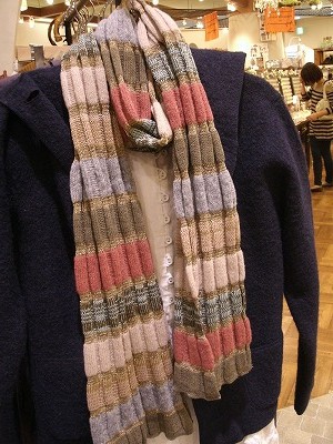 ラメ糸が入ったボーダーのマフラー(¥5250)。