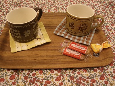 なんだか切り株のような、りすとときが描かれたマグカップです。ほっこりココアが飲みたくなります。